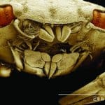 تعرَّف على سلطعون الطين Mud Crab . وكما يوحي الاسم، تستمتع هذه القشريات بقضاء وقتها مغطاةً بالرواسب الموحلة لمستنقعات المنغروف Mangrove Swamps والسباخ المالحة Salt Marshes حول سواحل أمريكا الشمالية والجنوبية. تتغذى هذه السلطعونات على المحار الصلب القشرة والرخويات الصغيرة مثل البريقوق Periwinkles، مستخدمة مخالبها وفكوكها الشبيهة بالفكَّين (كما يظهر في وسط هذه الصورة) لكسر أصداف فرائسها.