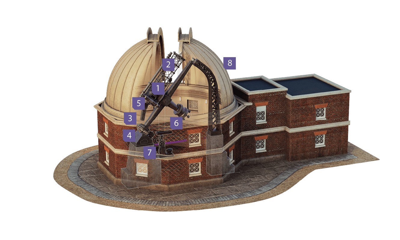 يتيح محرك كهربائي مزود بتروس، إضافةً إلى ثقل ساقط، تدويرَ التلسكوب بزاوية 360 درجة، وتوجيهه إلى أي مكان داخل نصف كرة القبة.