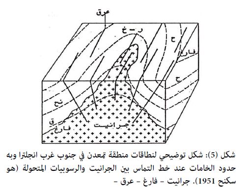 رواسب خامات اقتصادية تتواجد عند تماس صخور نارية متداخلة مع الصخور المحيطة. ![]()