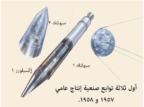 1957 يطلق العلماء السوفييت أول تابع صُنعي يأخذ مداره حول الأرض؛ سبوتنك ١ وسبوتنك٢ (تعني مفردة سبوتنك رفيق الدرب). يزن التابع سبوتنك١ ١٨٤ رطلاً (٨٣,٦ كجم) ويكمل دورته حول الأرض خلال ٩٦ دقيقة. أما سبوتنك ٢ فيحمل على متنه الكلب لايكا وهو أول كائن حي يرتاد الفضاء.