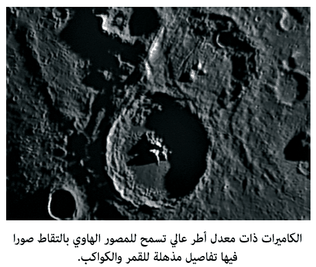 قد وجد في الغالب من خلال التجربة أن بعض كاميرات الكمبيوتر (PC webcam) الرخيصة مناسبة لتصوير القمر والكواكب. ومع ذلك، فإن بعد تعدي معدل أطر معين (في العادة 10 أطر في الثانية) تستخدم هذه الكاميرات تقنيات ضغط البيانات لاستمرار تدفق المعلومات، الأمر غير الملائم للتصوير الفلكي. وقد انتشرت اليوم الكاميرات الجديدة ذات معدل أطر عالي في هذا المجال من التصوير الفلكي، إذ يمكن القول أن هذه الأجهزة هي عبارة عن كاميرات كمبيوتر ذات قوة صناعية بإمكانها نقل معدلات تصوير غير مضغوطة تفوق 60 إطار في الثانية- الأمر المثالي لالتقاط اللحظات العابرة عندما تكون جودة المشاهدة عالية.