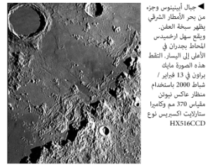 ومن المحزن أن سلسلة الجبال المستقيمة تتجه من الشرق إلى الغرب وبالتوازي مع مسار الشمس عبر السماء القمرية؛ ولوكانت تتجه من الشمال إلى الجنوب لكان مظهرها بعد شروق الشمس موضعياً أو قبل الغروب يحبس الأنفاس ويلقي بحزمة واسعة مسورة من الظل.