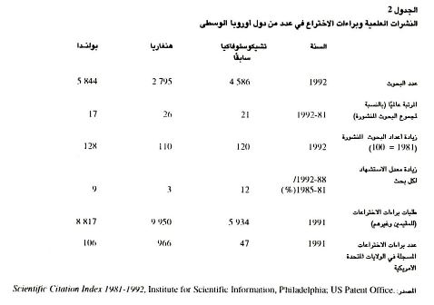 وعلى نقيض التوقعات الأولية فإن مراحل التحول خلال الأعوام 89– 1995 لم تؤدِ إلى تغيير يُذكر في المستوى العلمي لدول أوروبا الوسطى على المستوى العالمي (انظر الجدول رقم 2 والشكل رقم 3).