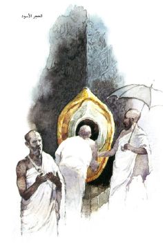 ومنْ أشهرِ أحاديثِ الحجَر الأسودَ، أن قُريشاً أعادتْ بناءَ الكعبةِ قبل بعثَةِ النَبيِ صلى اللهُ عليهِ وسلّم بخمسِ سنينَ، فلمّا ارتفع َ البناءً إلى مَوضعِ الحجرِ اخْتَصَمتْ قبائِلُ قُريْش؛ كُلها تريدُ أن تنالَ شَرفَ رفْعَ الحَجَرِ إلى موْضِعِهِ، حتى كادُوا يقتَتَلون.