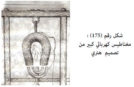 وبذا استطاع مغناطيسه أن يحمل 2300 رطل من الحديد المطاوع. ويبين شكل رقم (175) مغناطيس كهربائي كبير من تصميم هنري.
