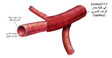 تكون جدران الأوعية الشَعرية رقيقة جداً ينتشر أو يتسرب الأكسجين ومواد أخرى خارجها بسهولة إلى الأجزاء حولها.