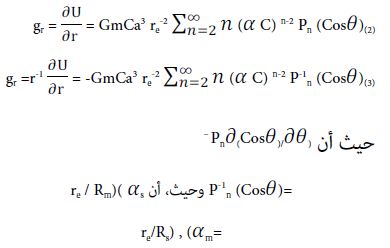 الممثلتين بالمعادلتين (2)،(3) بدقة تصل إلى ± 0.004 ميكورجال (1 جال = ا سم.ثانية–2) بالنسبة لمد وجزر القمر، كما أن دقة مماثلة أصبحت متاحة بالنسبة لمد وجزر الشمس.