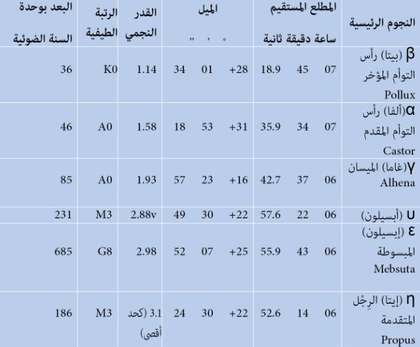 كوكبة التوأمين كوكبة كبيرة ومهمة بين الكوكبات الشمالية في دائرة البروج.![]()