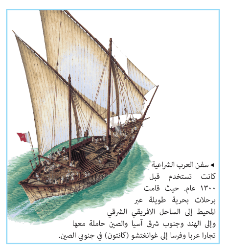 أما في المحيط الهندي، فإن تطوير خطوط التجارة البحرية التي تمتد من الساحل الشرقي الأفريقي إلى الجزيرة العربية وإلى الساحل الغربي للهند لابد وأنه قد تم منذ زمن بعيد، نظرا لأن كلا من المالديف وسيريلانكا قد قامتا بارسال مبعوثين إلى روما قبل مايزيد عن ٢٠٠٠ عام. ولدى دخول الأوروبيين إلى جنوب شرق آسيا، كان العرب قد أسسوا شبكات تجارية واسعة النطاق بناء على المستعمرات والبؤر الاستيطانية والتي امتدت من الساحل الشرقي لأفريقيا وصولا إلى طرف غينيا الجديدة.