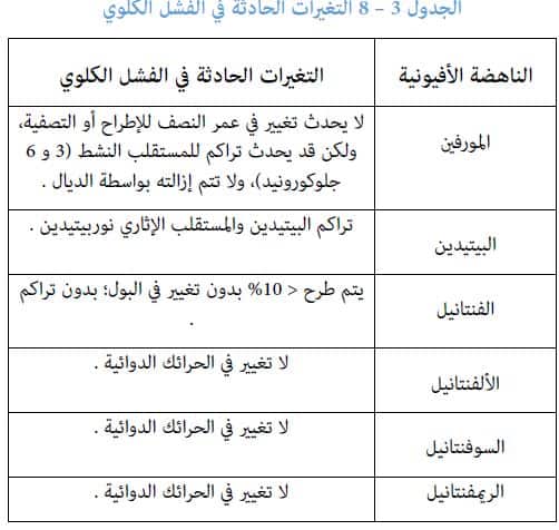 الجدول 3-4 الآثار البيولوجية لأنواع المستقبلات الفرعية الأفيونية