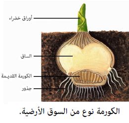 أما رابعُ أنواع السوق الأرضية فيسمى «الكورمات»، وهي كرويّةُ الشكل تقريباً كبيرةُ الحجمِ نسبياً وهي أيضاً مختزنةٌ للموادِّ الغذائيةِ مثل كورمة القلقاس.