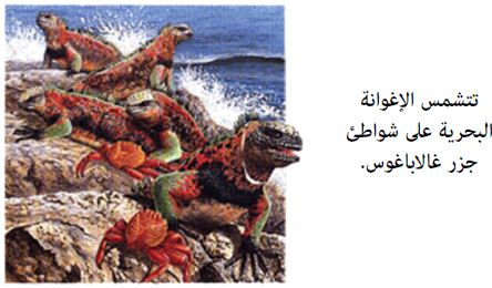 يكون الماء حول غالاباغوس بارداً، ويمكن للإغوانة أن تعيش في درجات الحرارة المنخفضة بإبطاء معدل خفقات قلبها عندما تغوص، بحث لا يفقد دمها الكثير من الحرارة من خلال جلدها.