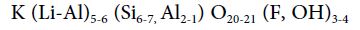 ومعدن الليبيدوليت من معادن الميكا الغنية بالليثيوم، ولذلك يعرف بالميكا الليثيائية أو الليثونيت، والصيغة الكيميائية للمعدن هي :